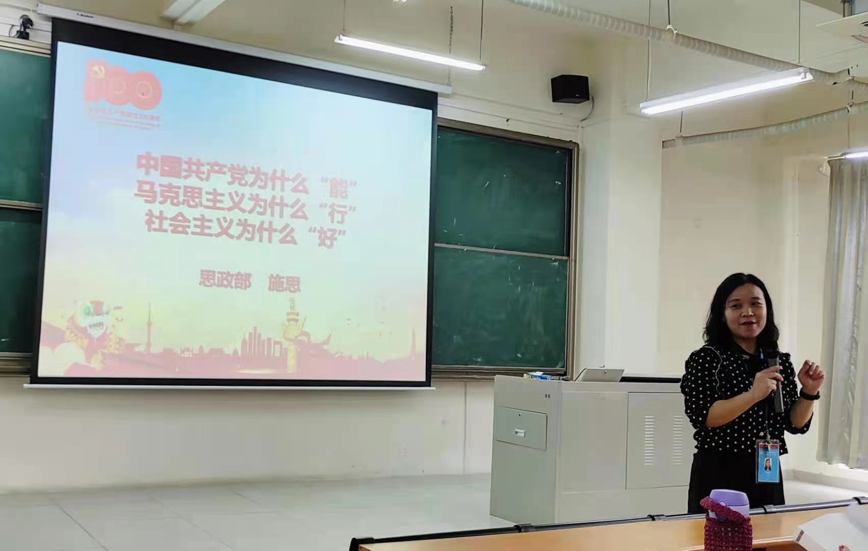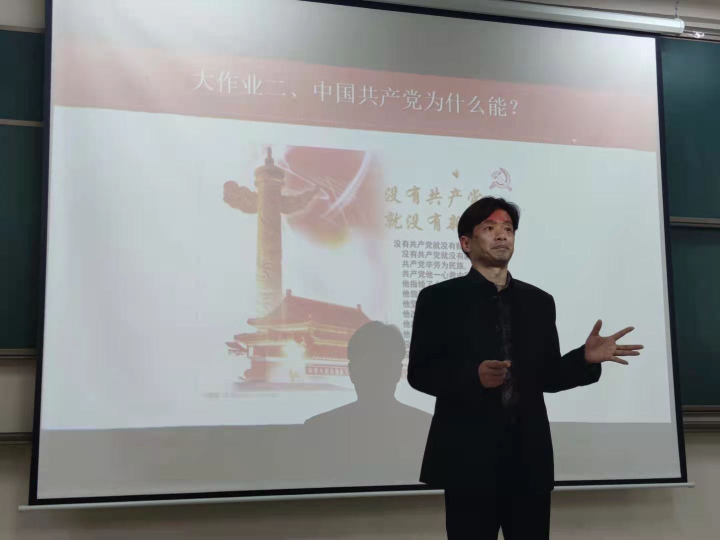 近一周来,思政课老师结合《毛泽东思想和中国特色社会主义理论体系概论》的教学,首先将中国共产党为什么“能”,这一专题与大学生进行了探讨。一是讲解了中国共产党的产生;二是讲解了中国共产党领导中国全国各族人民取得新民主主义革命战争的胜利;三是讲解了中国共产党带领全国各族人民取得了社会主义建设的胜利;四是讲解了中国共产党带领全国各族人民取得了改革开放和中国特色社会主义建设的伟大胜利。